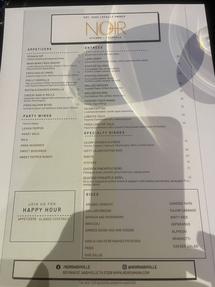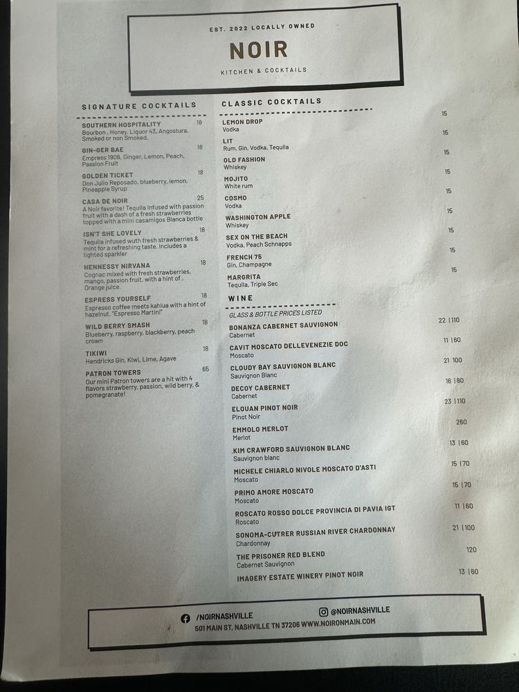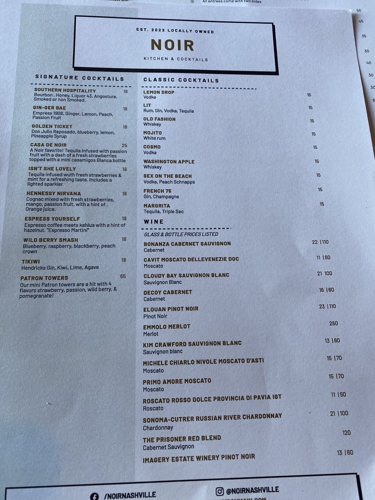 Noir Menu